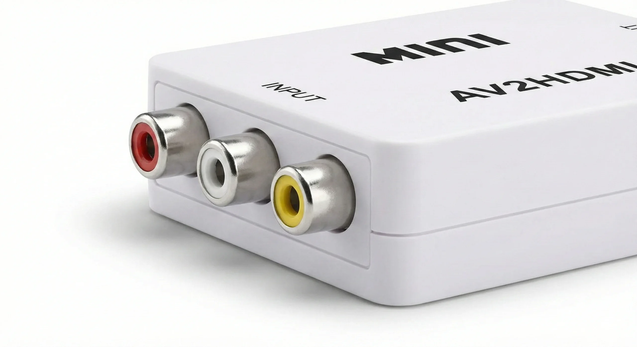 1 x Convertidor RCA a HDMI: El dispositivo principal compacto con puertos de entrada AV y salida HDMI.