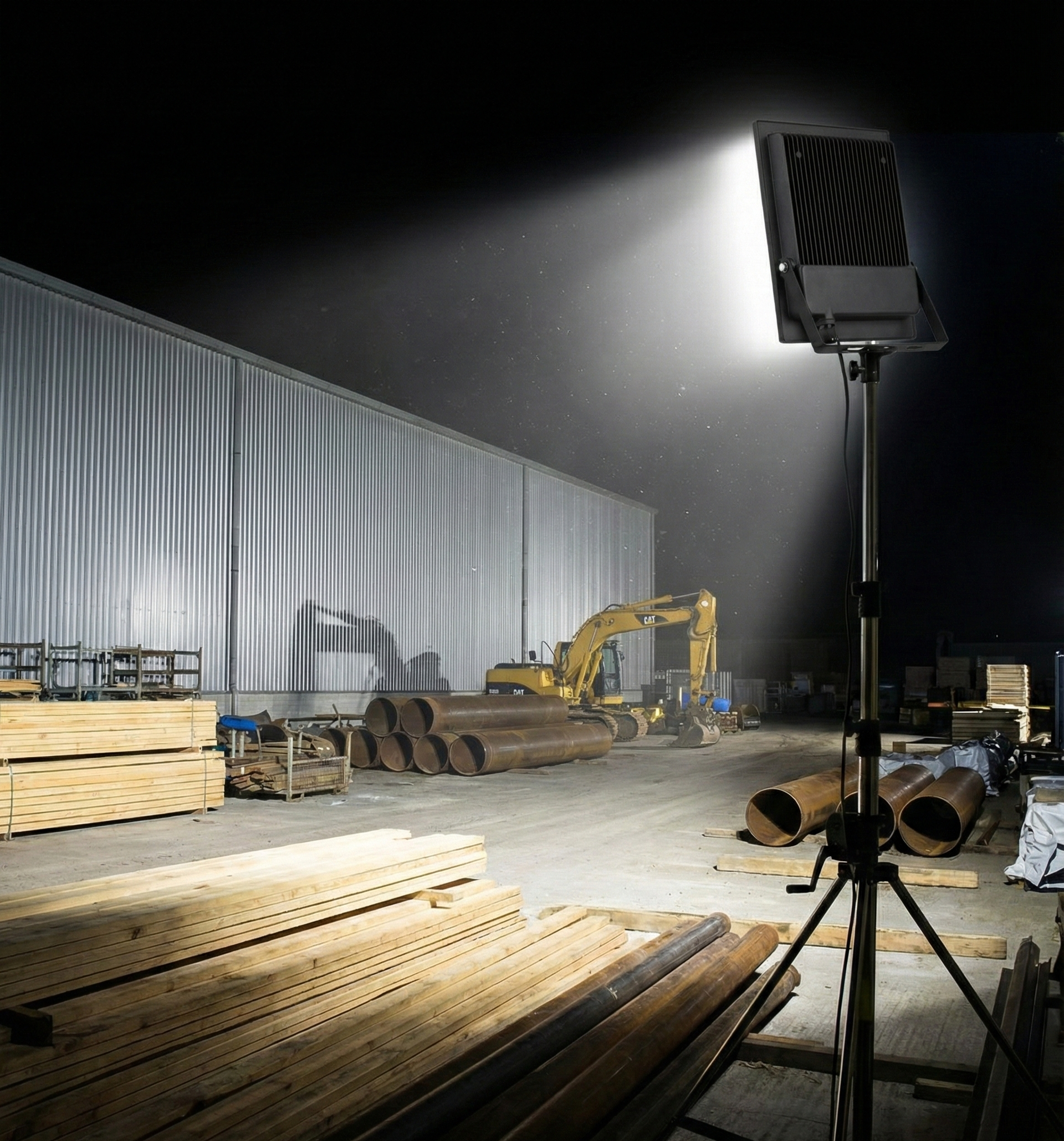 - Iluminación de Alto Alcance (200W) Proyecta una luz potente y nítida capaz de cubrir grandes áreas. Su temperatura de color de 6500K (Luz fria) garantiza una visibilidad perfecta, ideal para seguridad perimetral o trabajos nocturnos.